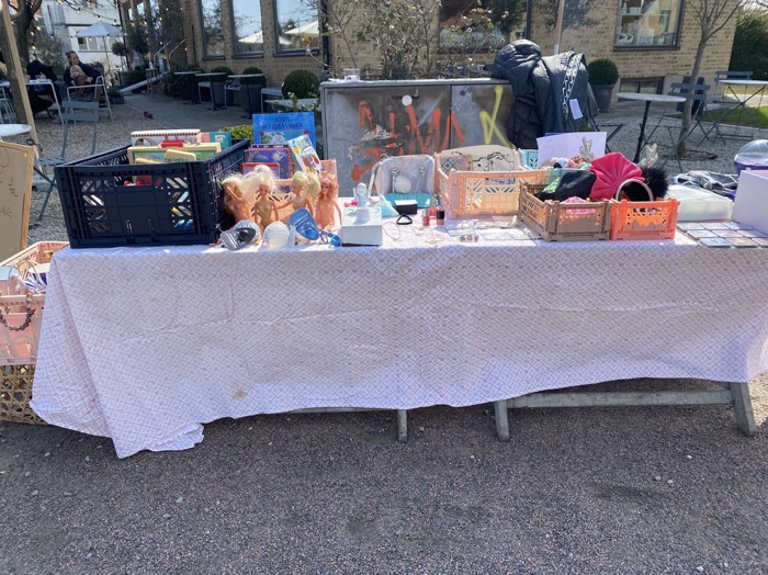 Det var både för små kläder och saker som vi inte använder längre. Vi valde att ha loppis så att det kommer till användning istället för att vi slänger det!