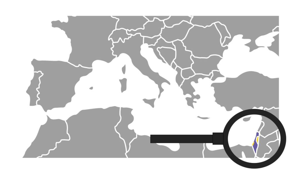 Det lila är Israel. Palestinier bor där det är gult. Bild: Shutterstock/redigerad