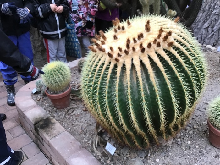 Därefter gick de in i växthuset. Där såg de massor med ovanliga växter som lever i värme. De såg en stor, rund och taggig kaktus som hette svärmors kudde. Den kom ifrån Mexiko. Där fanns också en kakaoplanta, en bomullsplanta, en drakblodsväxt och en apelsinplanta.
