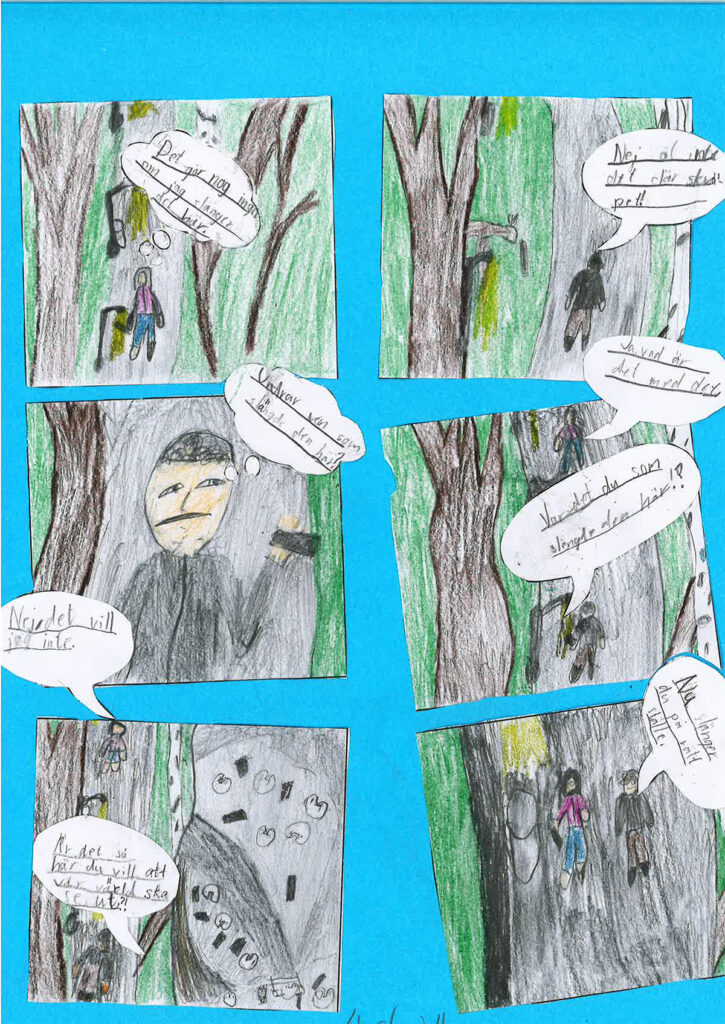 Axel har skapat en serie om att vi alla måste hjälpas åt att hålla rent. Han ritade och skrev serien när han gick i trean på Prästslättsskolan i Karlshamn.